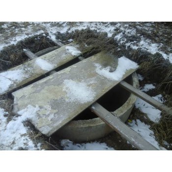 Крышку можно купить готовую — есть отдельно круглые плиты с люком, но люк — круглый, и обычно небольшого размера — 70-80 см. В него не каждый может просто залезть, а еще и с грузом будет вообще тяжело. Так что этот вариант не для всех.