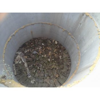 Исходя из этих условий, нужен кессон, но ввиду стоимости заводских камер из ПНД, такой вариант не подходит – средства нужны еще и на строительство каркасного сарая. Взяв за основу саму идею кессонного погреба, аragon решил сократить затраты за счет использования бетонных колец КС 15-9 (150×90 см) в количестве трех штук. Нижнее кольцо с днищем, для повышения герметичности изнутри кольца, обработал специальным гидроизоляционным составом.