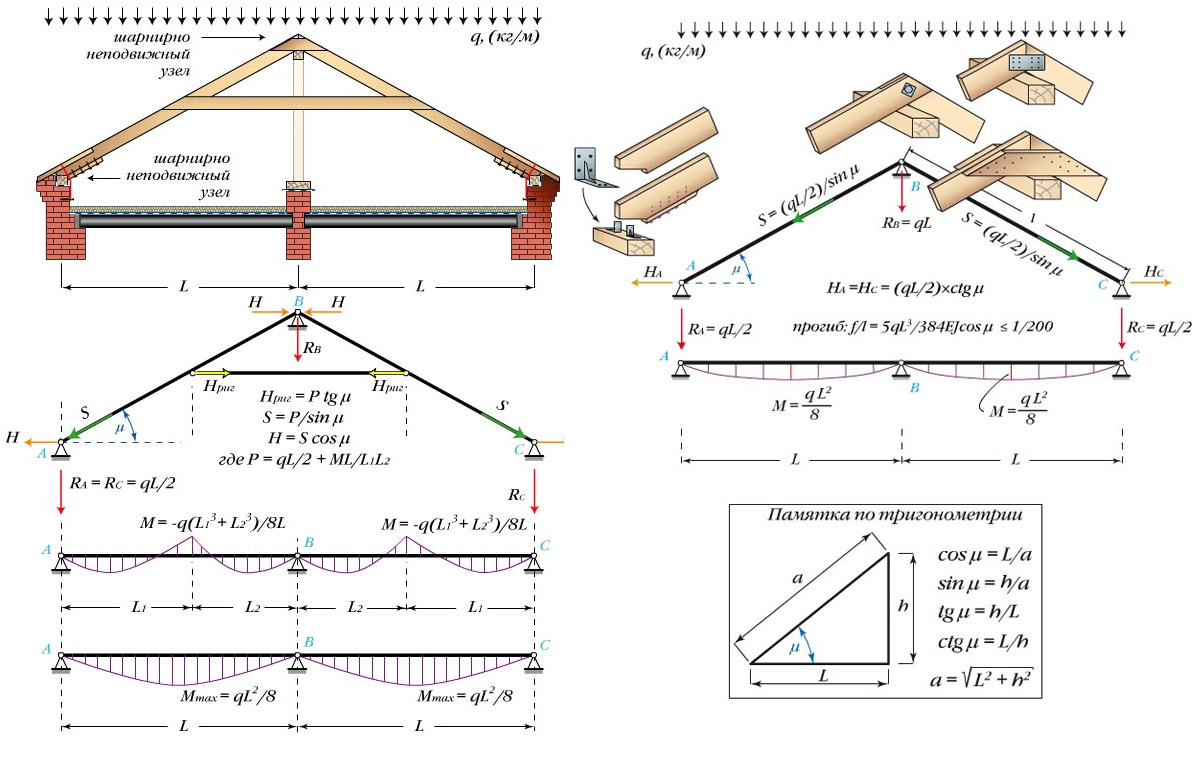 При предварительном расчете затрат, планировании стропильного каркаса и двускатной крыши в целом важно учитывать следующие моменты:
