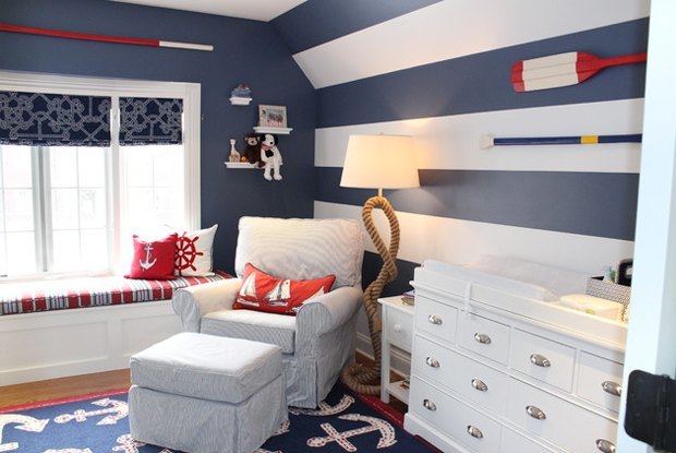 Основу пляжного стиля, как правило, составляют вполне традиционные и востребованные в любом другом стиле цвета — белый, синий, бежевый и коралловый, а также цвет палубной доски, латунь или бронза. Можно хром, но точно не пластик. Самую важную роль здесь играют детали: старые выгоревшие вёсла на стенах, подушки с морскими коньками, бутылки из выдувного стекла, канаты и прочая морская атрибутика. Морской декор часто используется для детских: малышам сложно жить в скучном прямоугольном мире.