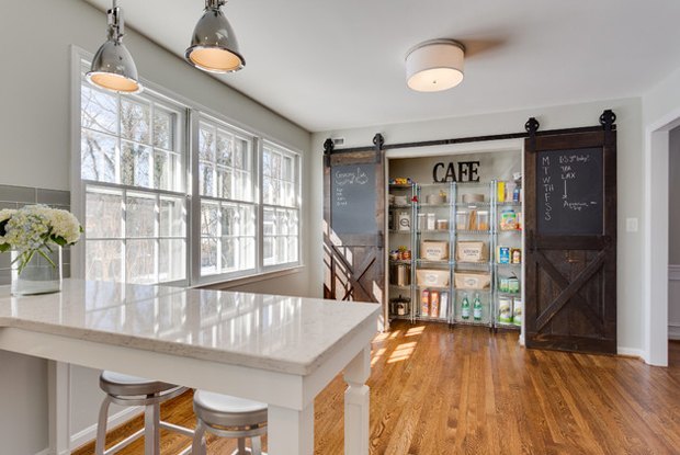 Скандинавский стиль не подразумевает хранение вещей в шкафу. Обустройте гардеробную или кладовую для этих целей.