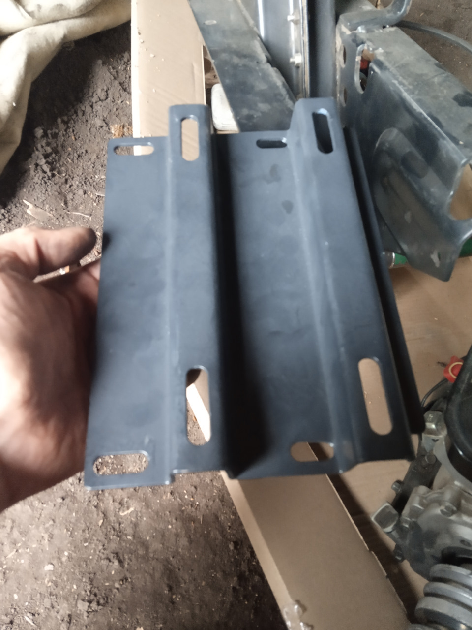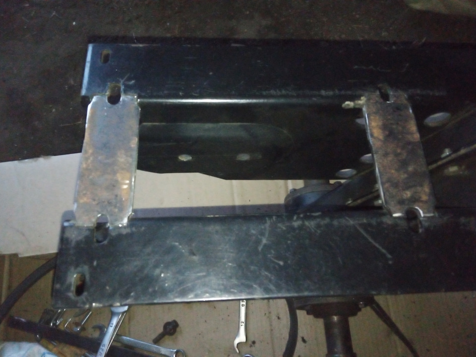Но не все так просто, переходник не хотел приворачиваться к раме. Болт попал мимо отверстия в раме. Пришлось изготовить пластины, и с ними закрепить мотор.