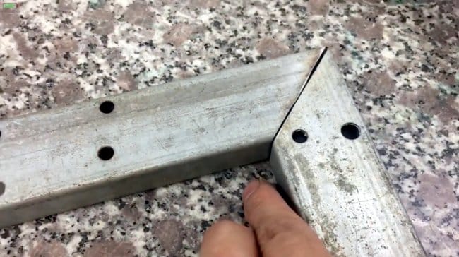 Вырезав прямоугольную заготовку, и учитывая радиус шлифовального диска, он разметил центр отверстия для шейки дрели.